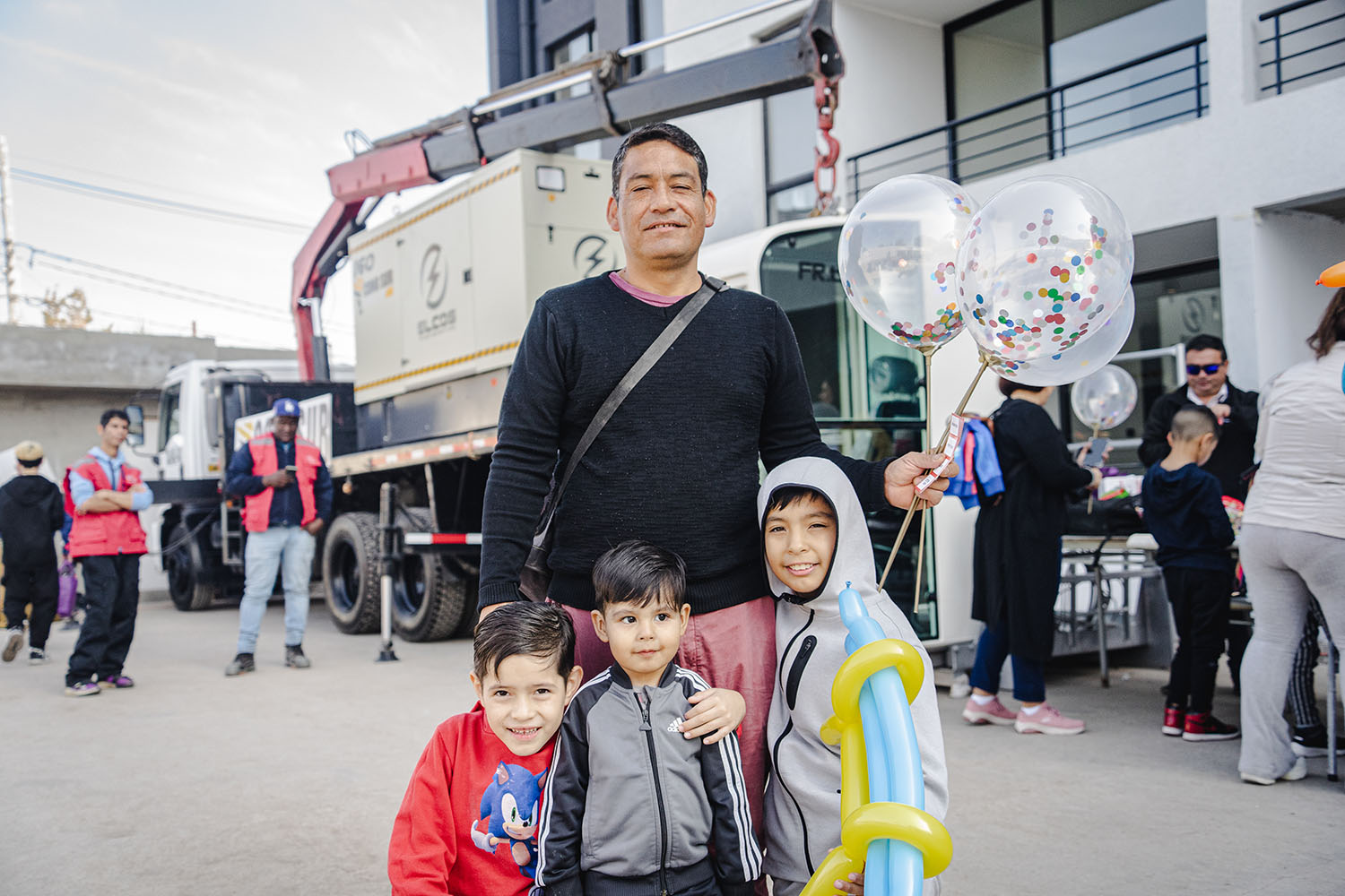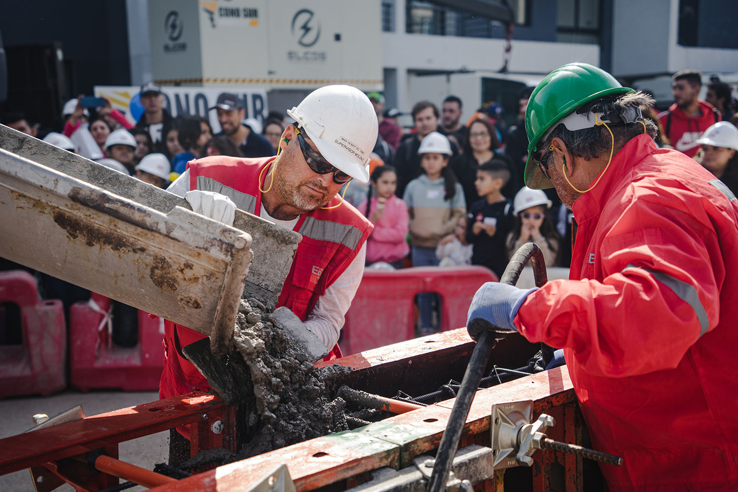 Uno de los momentos más emocionantes fue la llegada del camión hormigonero y la demostración del proceso de moldaje para todos los niños y niñas.