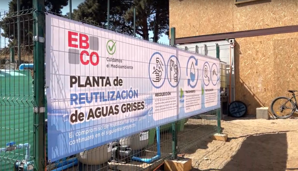 La planta de reutilización de aguas grises trata aproximadamente 5.000 litros de agua al día, que luego es utilizada en sistemas de riego de caminos de tierra, lavado de ruedas de camiones a la salida de obras y humectación al acceso a obra.